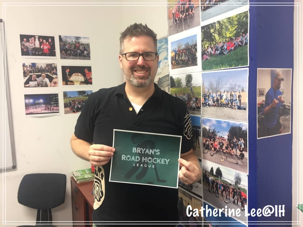 比如說他會不定期去玩曲棍球,教室牆面也有很多他與學生們玩曲棍球的照片