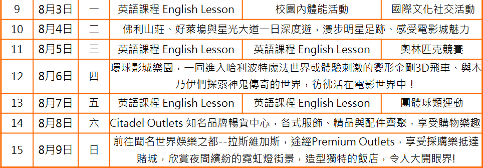 有豐富的景點參訪活動及各式各樣團康活動。