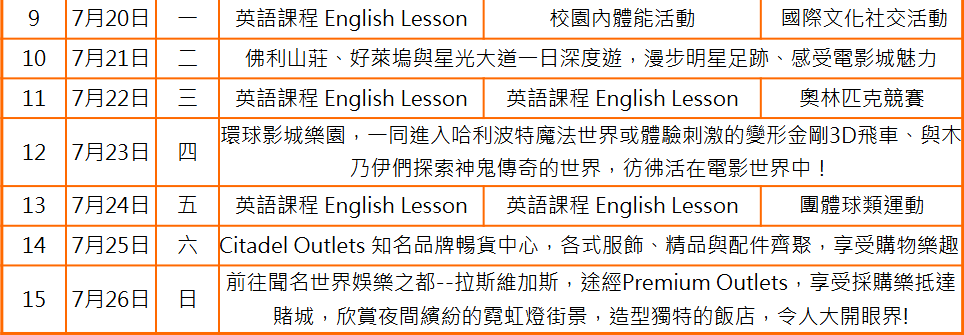◎所有行程活動以學校課表為主