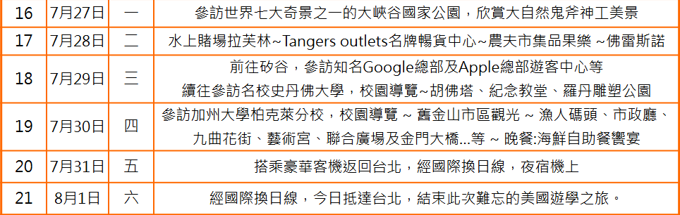 - 遊學期間: (共21天)