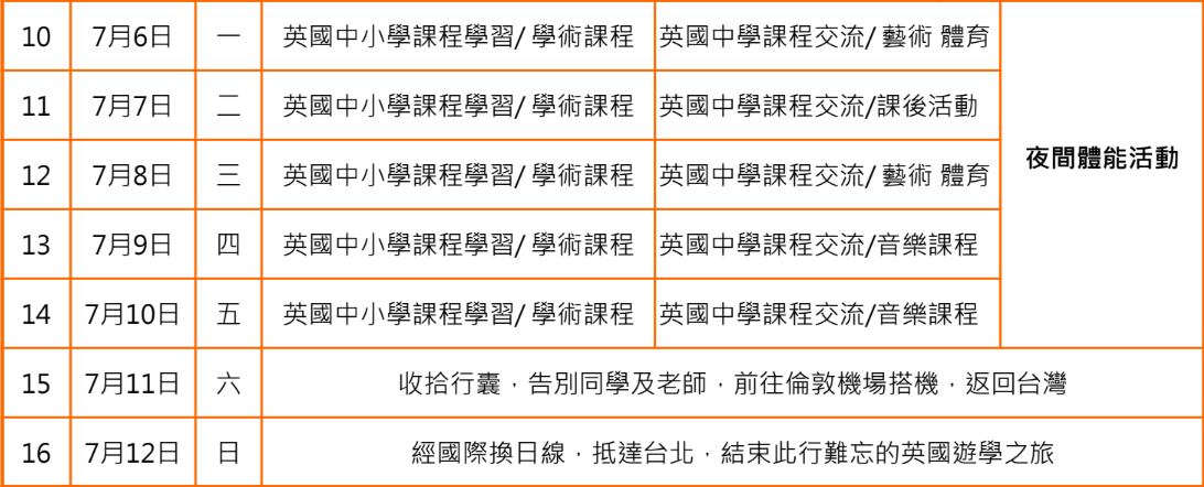 - 遊學期間:2026/06/27-2026/07/12 (共16天)