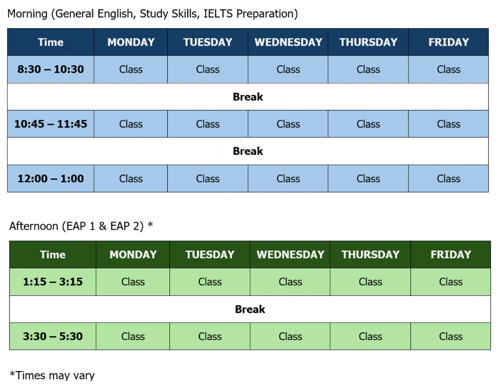 學生可依年齡與需求選擇與其他學生混合上課,或安排專屬小班教學。課程亦可依需求聚焦於:一般英語、商用英語或學術英語。