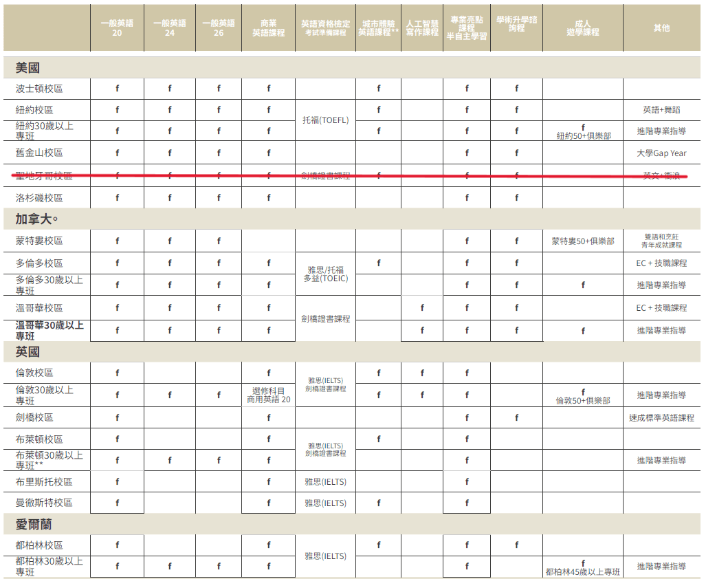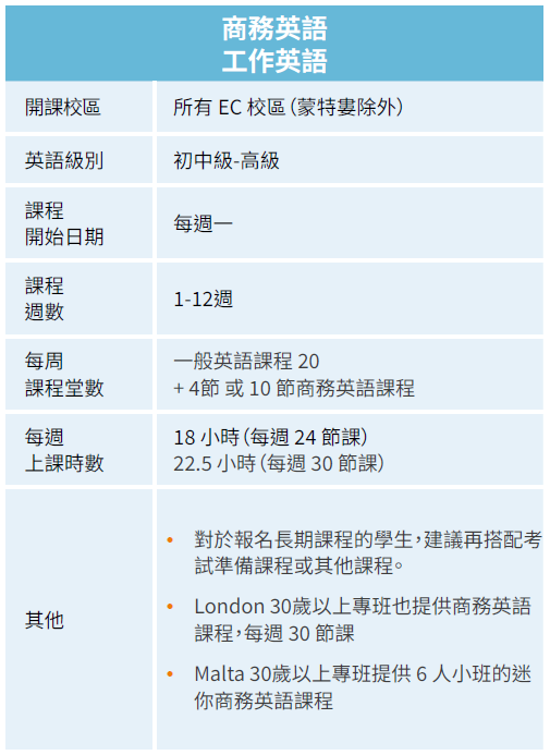 EC開設以下課程(因地區不同,開放課程略有不同)