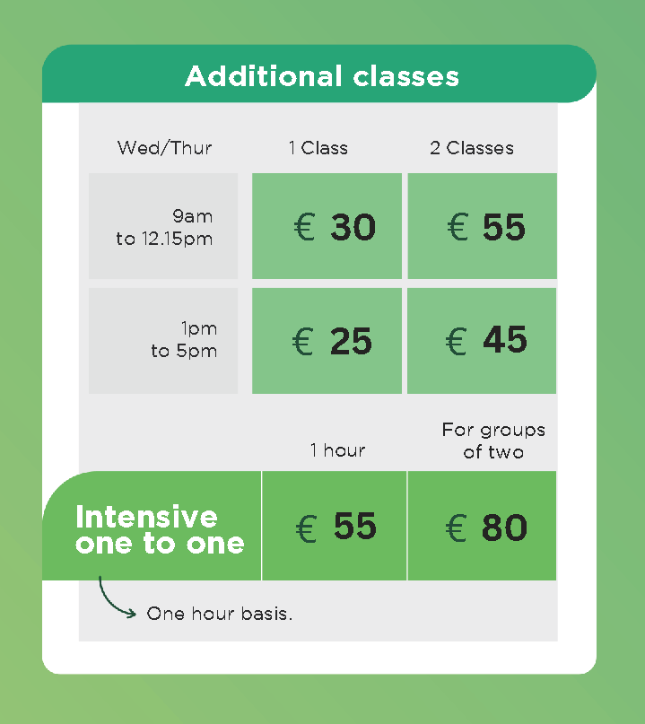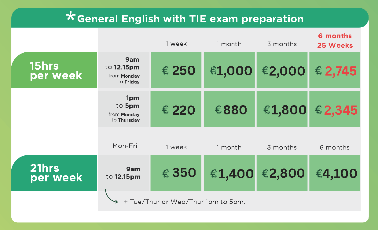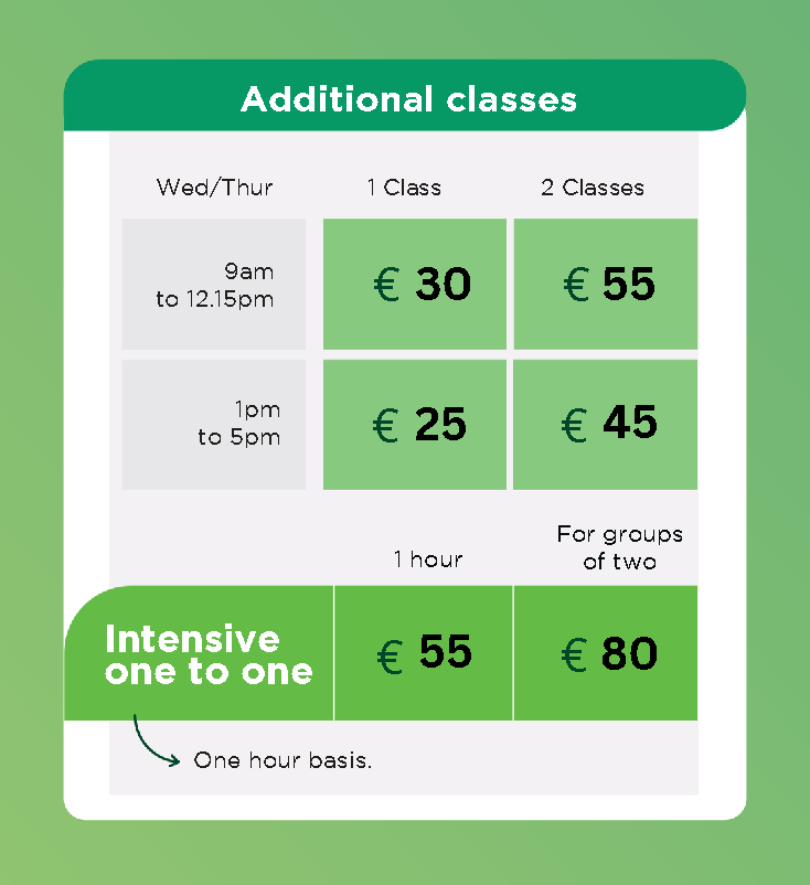 額外課程(愛爾蘭文化、口說、履歷準備、及其他)