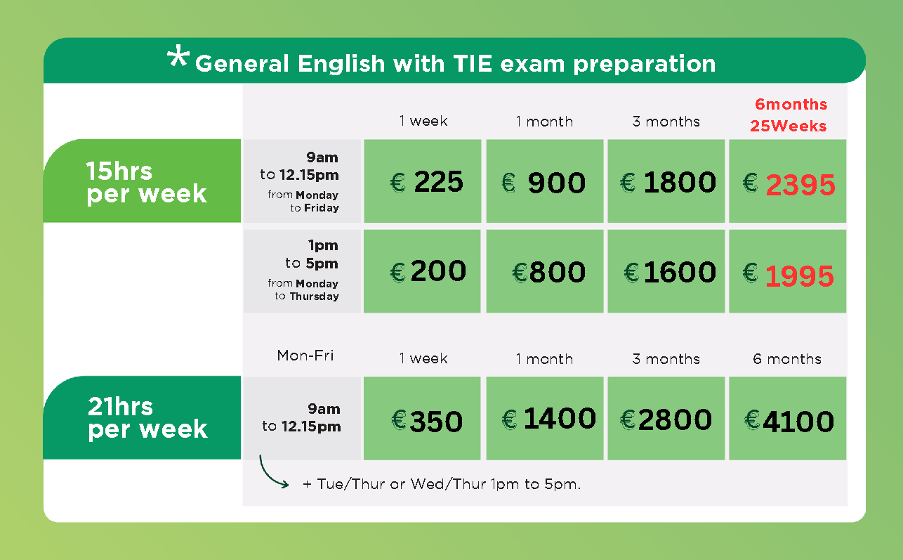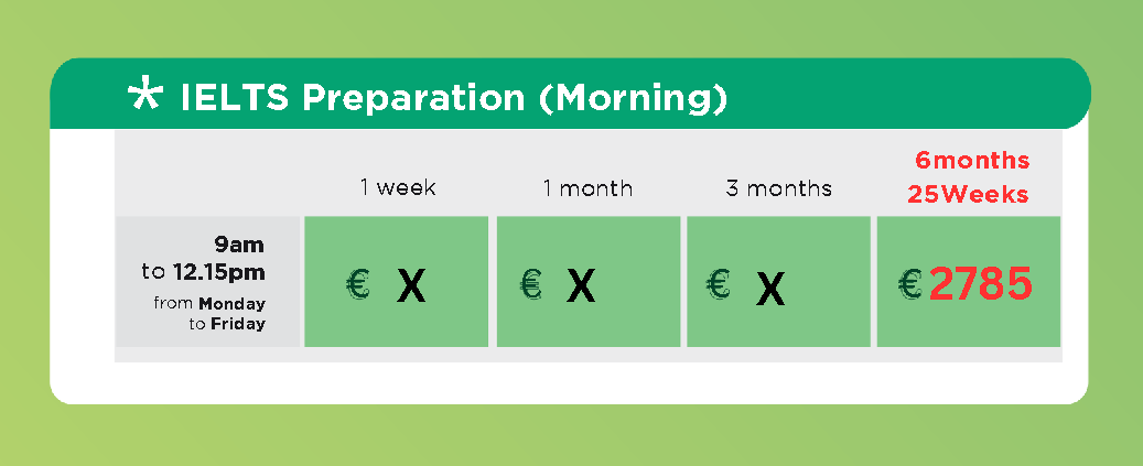 課程時長:11週一般英語+14週雅思準備課程