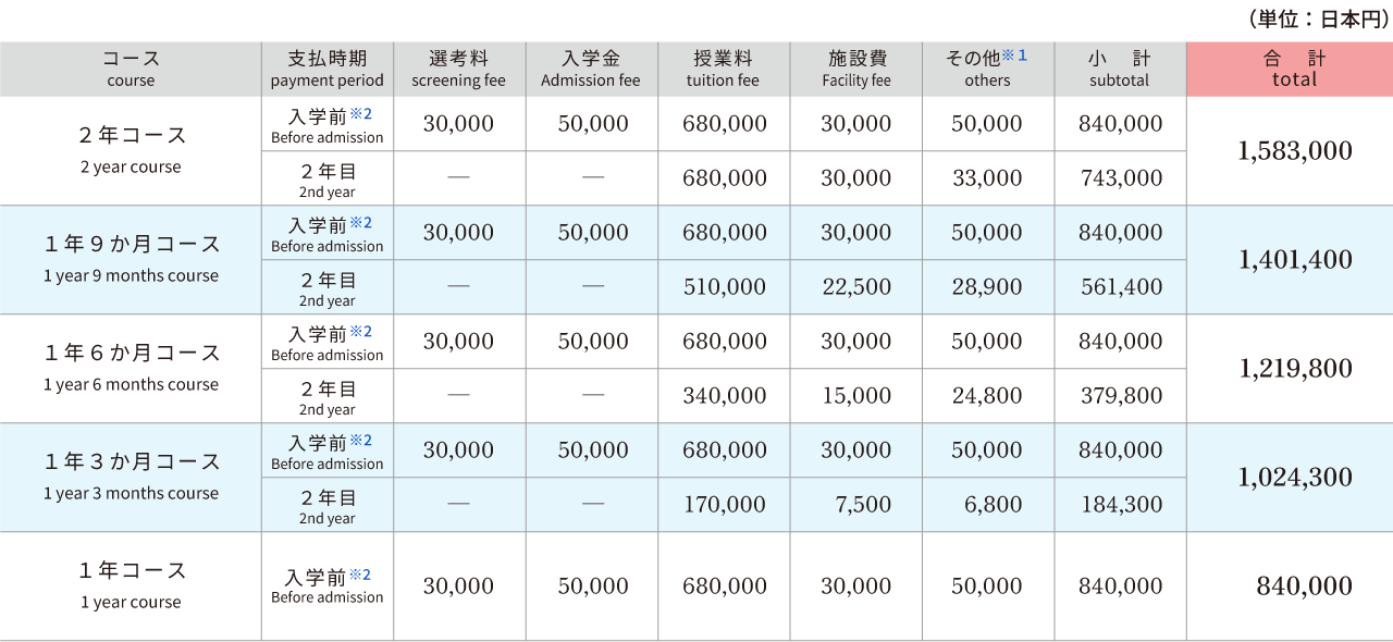 *2 短期逗留的學生可以加入“新留學生計劃”,該計劃可承擔入學後的醫療費用,入學費為每月1,700日元起。