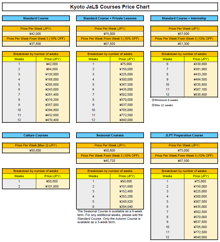 JaLS提供許多不一樣的課程內容,除一般語言課程外,學生可在自由搭配休閒娛樂活動、大眾文化體驗、時尚文化體驗......等,來豐富自己的留遊學生活。