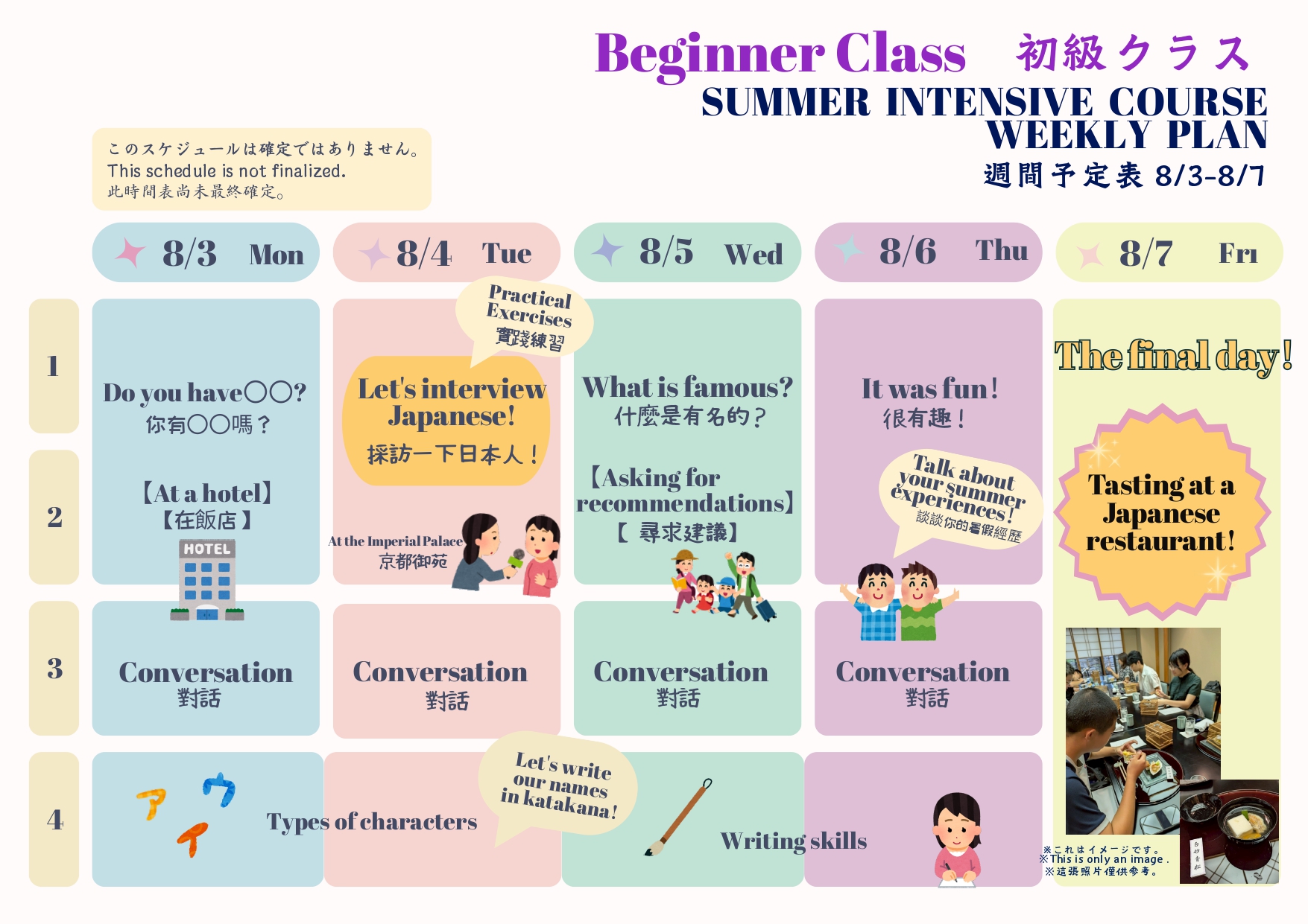 這是一個為期兩週的課程,專注於日語學習,並遵循此主題。
