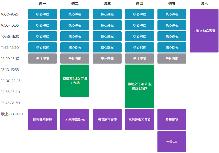 | 傳統文化 | 2-3個活動/週 | 12,000/週 | 最多4週 |