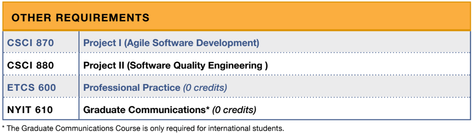 學生可選擇在軟體工程或資訊安全等領域專精,同時強化領導力、溝通能力與問題解決能力,為未來的科技職涯奠定堅實基礎,同時也可選擇完成產業導向專案、研究型論文,或參與與產業合作夥伴的實習(Co-op),於兩年內完成學位,並可在溫哥華與紐約校區之間轉學。