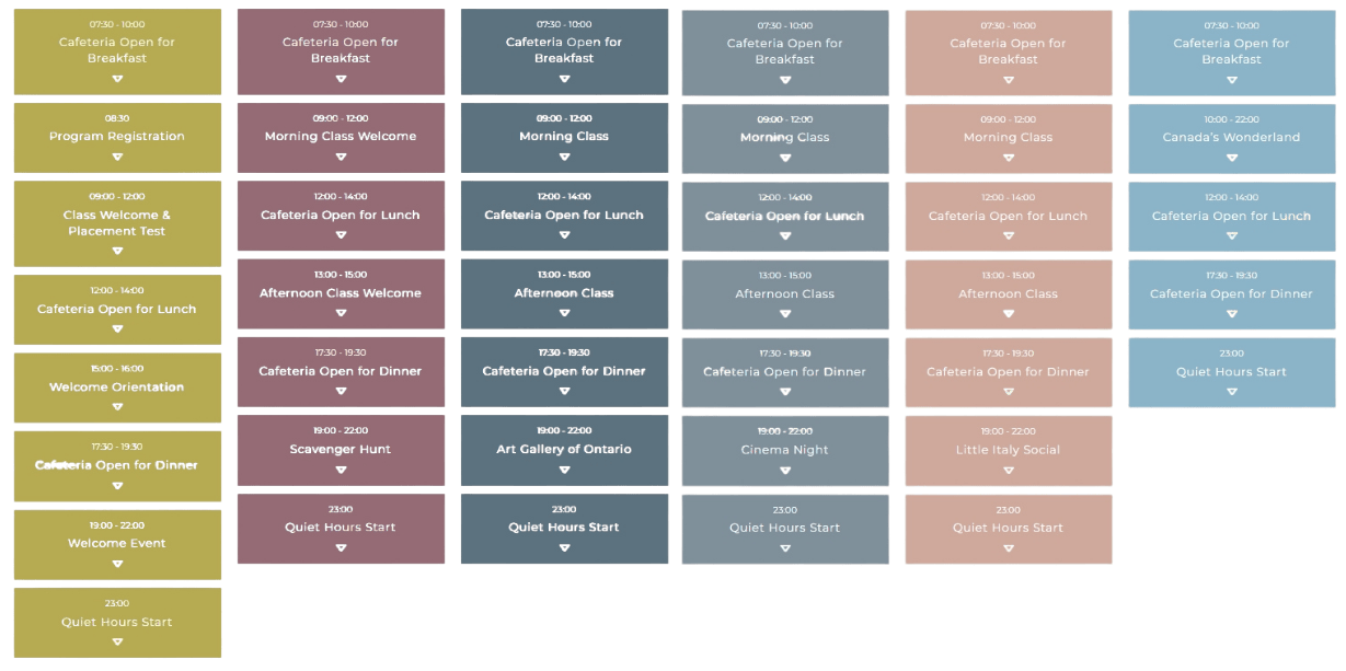 費用包含:學費、住宿費、保險費、餐食、接機服務(限開課日當天抵達)、晚間活動、週末旅遊