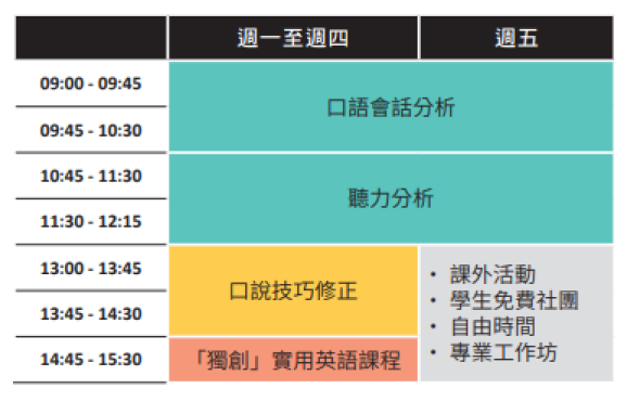 - 快速且密集的全日口說訓練專門課程