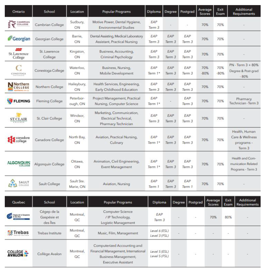 - 30 所以上合作的加拿大學與院