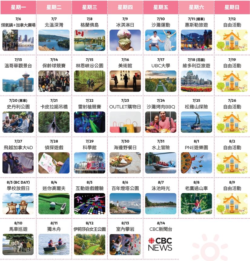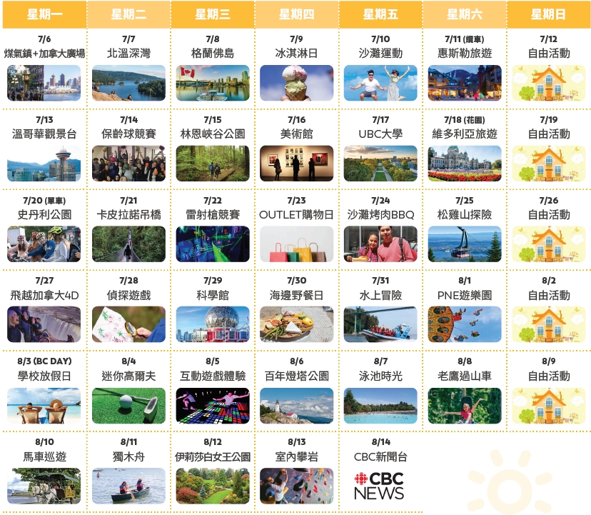 費用未包含: 機票 / 活動費 / 寄宿家庭安置費 / 寄宿家庭住宿費(含每日三餐) / 額外住宿費 / 機場接送服務 / 大眾交通車資 (Compass Card月票)