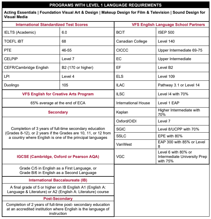 - VFS位於加拿大創意之都 –– 溫哥華,有上百的演藝經紀公司,UBCP(加拿大演藝工會分部維護7800多BC省演員權利,其中38%演員定居在溫哥華)。