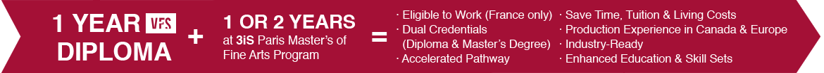 VFS 電影製作和視覺媒體聲音設計專業畢業的學生將自動獲得一年制加速藝術碩士 (MFA) 課程的資格