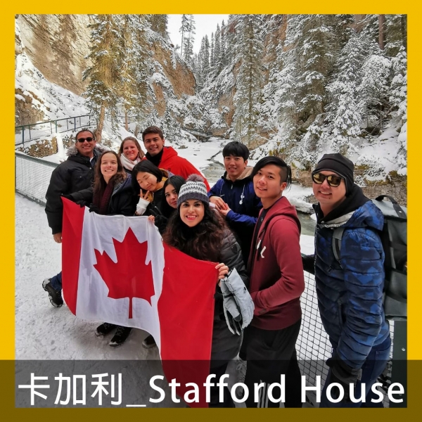 Stafford Housed卡加利校區位於市中心,輕軌站靠近8 Str.(若從西邊來)或是7 Str.(若從東邊來),學校則位於該棟大樓一樓。學校週期循環開始日為禮拜二,也就是說如果有換班或是新同學加入或是換老師等等都是在禮拜二為新的開始,禮拜一則是一週的考試日,而禮拜五為畢業日。