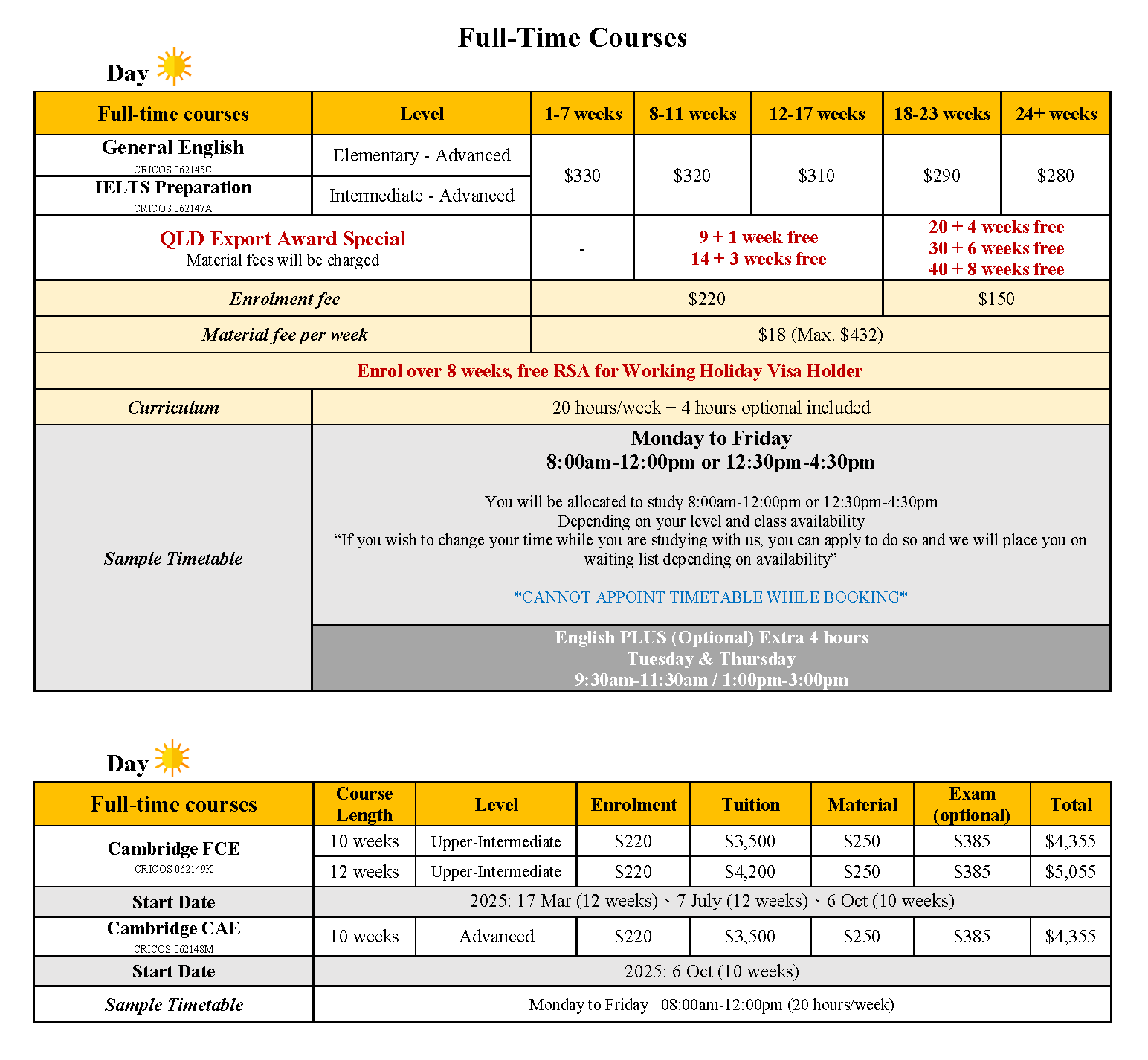 持打工度假簽證的學生滿八週以上(限白天全日制課程Full-Time Day)