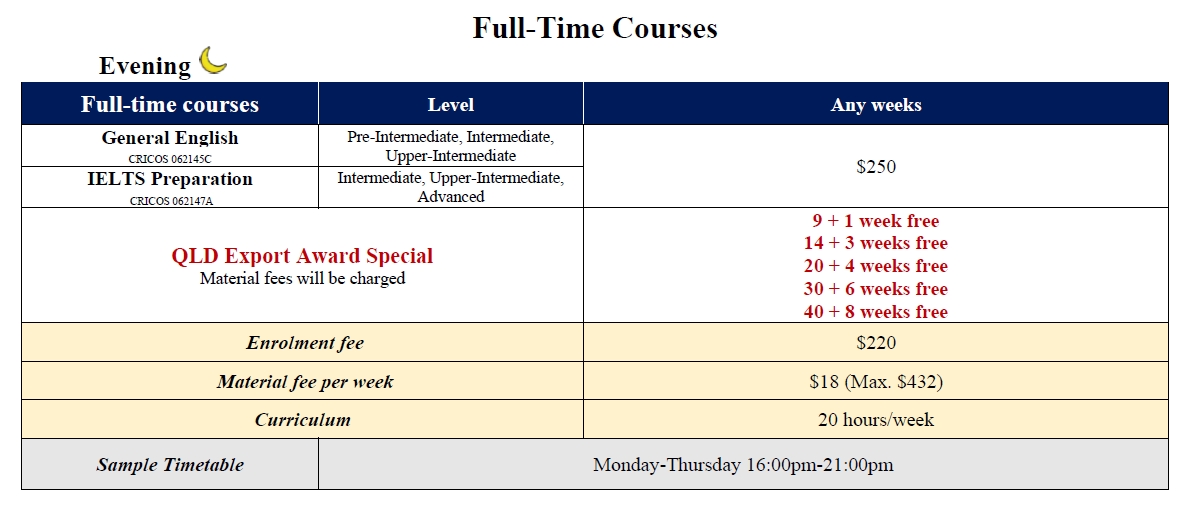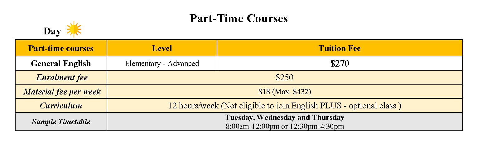 適用課程:全日制(Full-Time)的課程包含Day及Evening