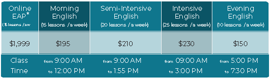 *教材費另計 15/10小時每週$10 , 20小時每週$15, 25小時每週$20, 咖啡課程$20/週