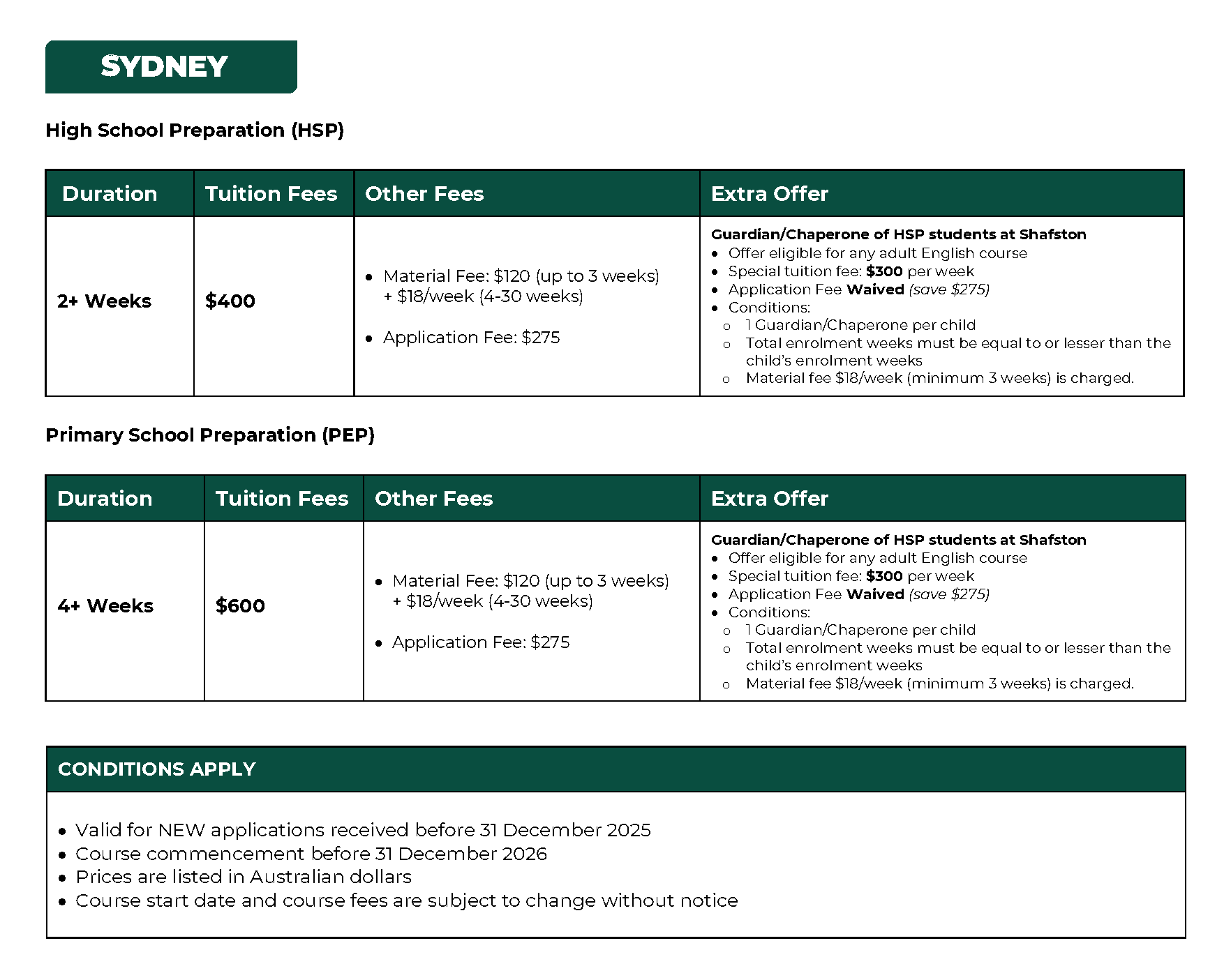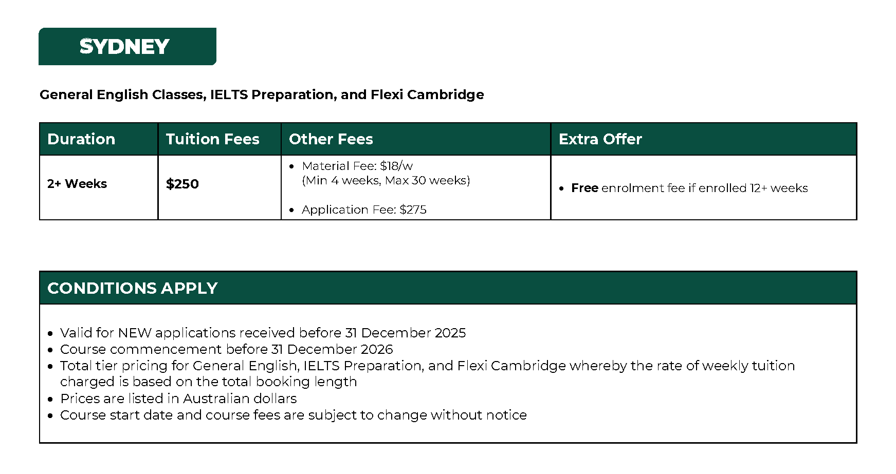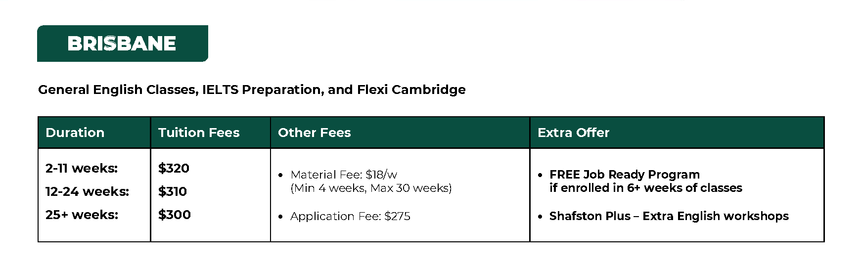 滿 10 週以上 | 贈送 2 週課程 免申請費(價值 $300) 免費參加 Job Ready Program(限布里斯本校區) |